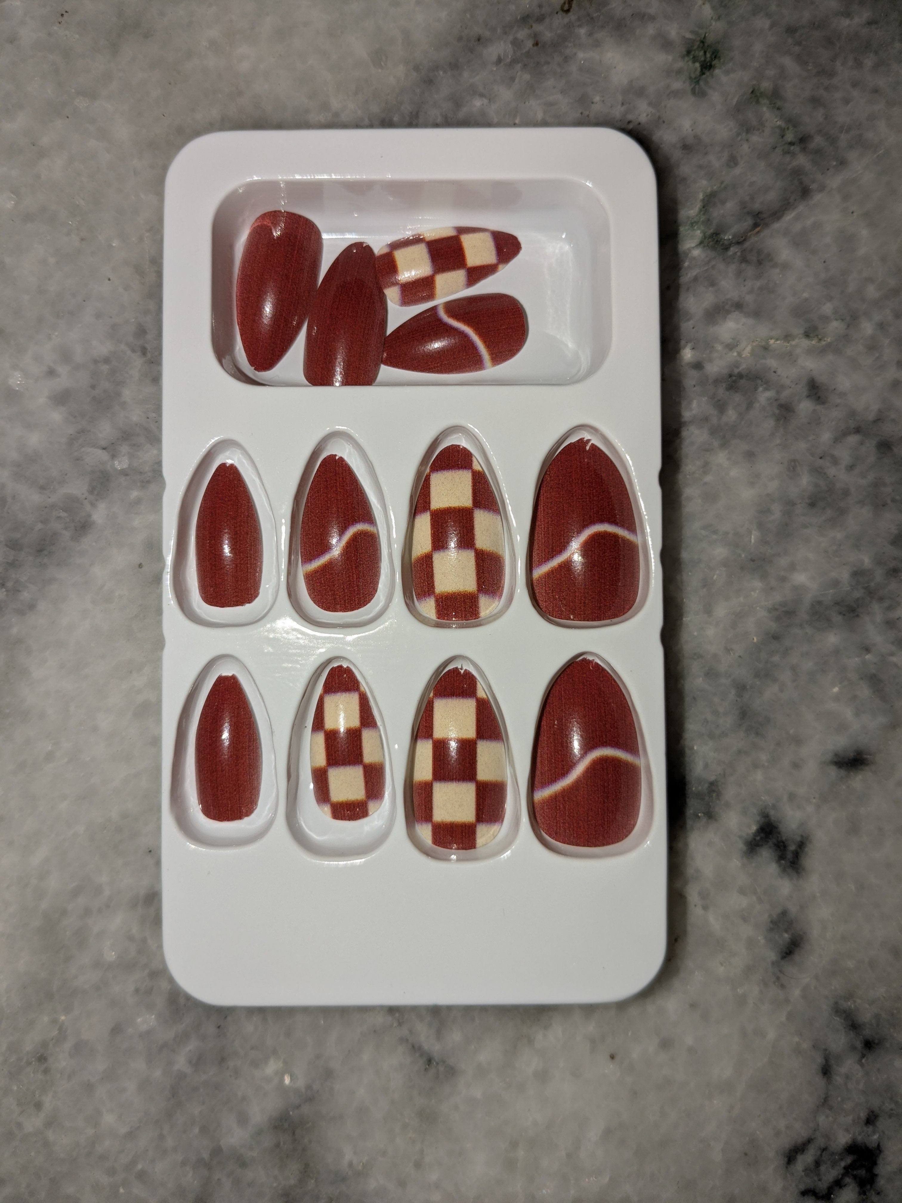 Brown & Beige Checkerboard Press-On Nails | Elegant Reusable Nail Set