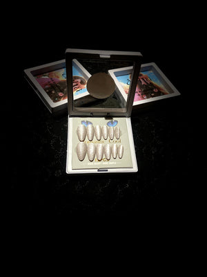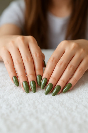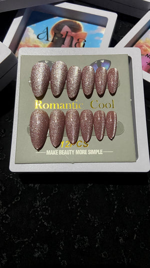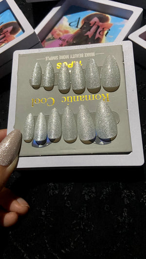Shine brighter with our Glitter Glam Nails Sub-Collection, featuring dazzling sparkling press-on nails in silver, green, and rose gold shimmer. Perfect for parties, weddings, festivals, and special occasions, these reusable press-on nails give you salon-quality glam in minutes.