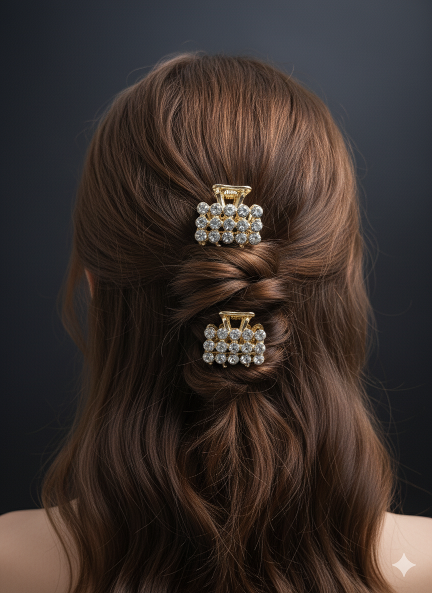 These golden claw clips combine timeless elegance with modern charm. Whether you’re attending a wedding, celebrating a special event, or just want to add a touch of sparkle to your day, these clips are the perfect accessory to complement your outfit.