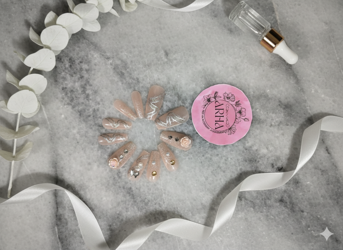 Enjoy a trendy, DIY manicure with these charming press-on nails—fun, fashionable, and hassle-free.
