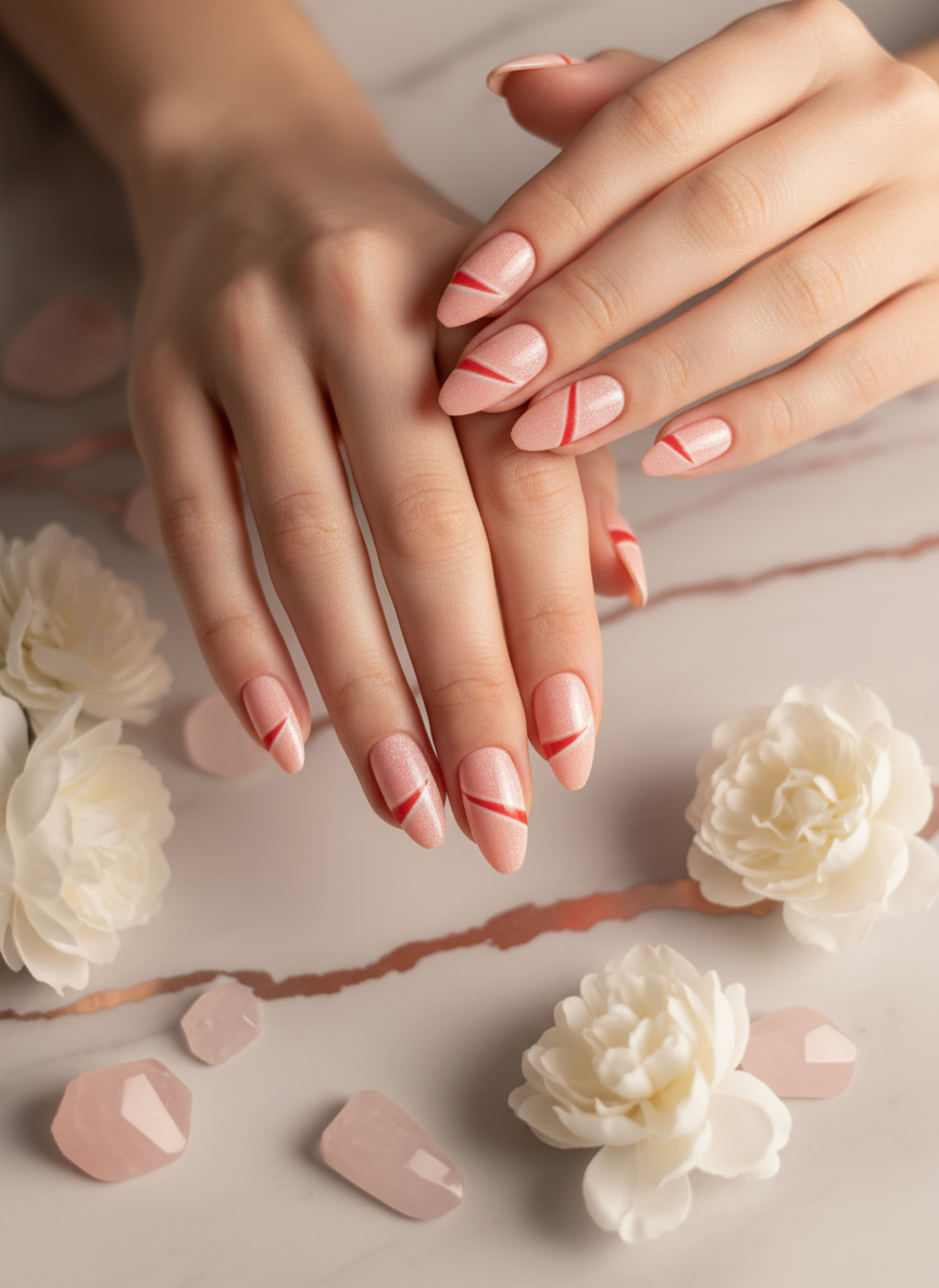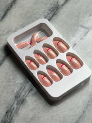 Peach & Pink Line Art Press-On Nails | Modern Reusable Nail Set