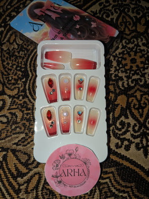 Turn up the glam with our Red Gradient Rhinestone Press-On Nails. This set blends a bold red-to-nude gradient with dazzling rhinestones and gem accents for a show-stopping manicure. Perfect for parties, weddings, and nights out, these reusable press-on nails give you instant salon-quality style without the hassle.