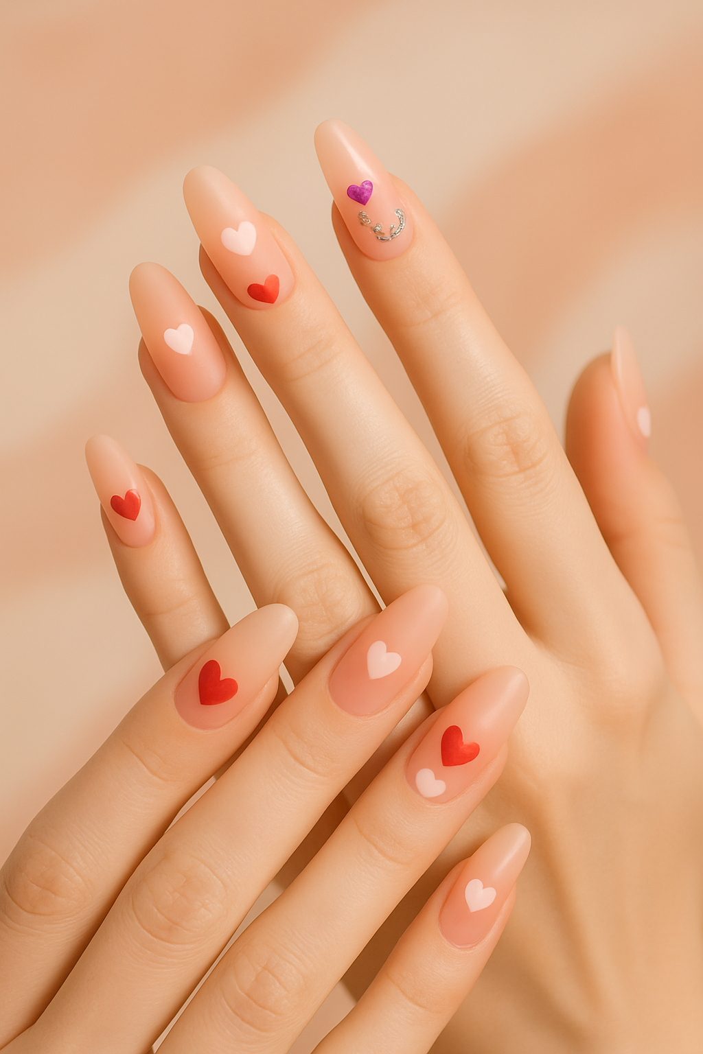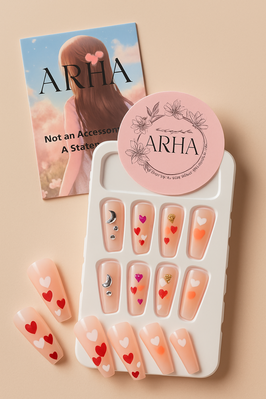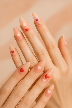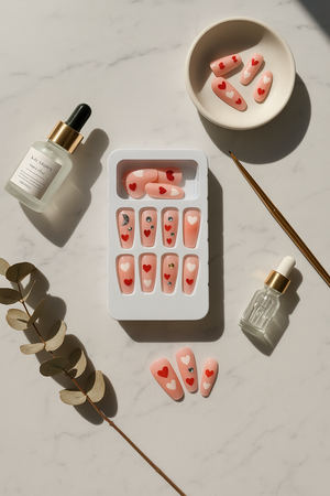 Fall in love with our Romantic Heart Press-On Nails, a charming blend of soft pink nude base with playful red & white heart patterns, sparkling rhinestones, and gem accents. Perfect for Valentine’s Day, date nights, weddings, or everyday glam, these nails bring a touch of romance and elegance to your style.