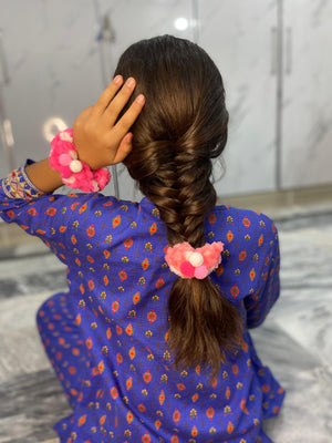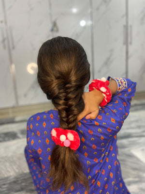 Add a playful and cozy touch to your hairstyles with this fluffy pom-pom scrunchie set. Made from ultra-soft plush fabric, each scrunchie is decorated with colorful pom-poms, making it the perfect accessory for both casual and festive looks.
